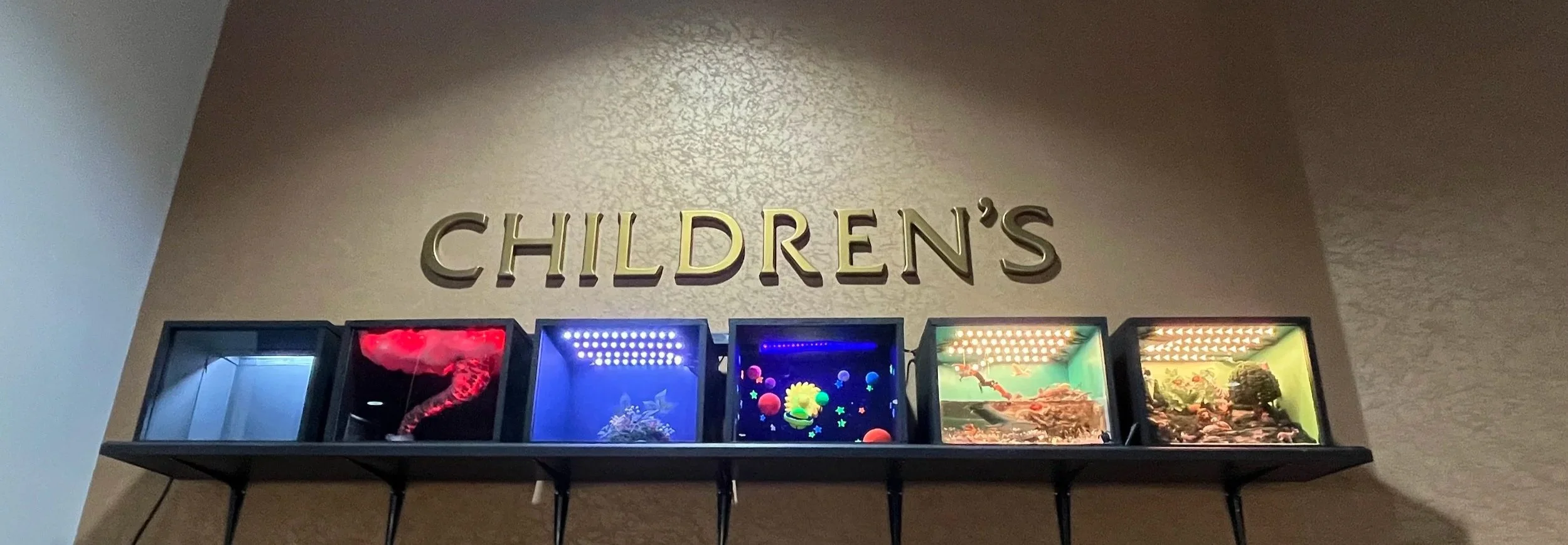NOTE: Check-in at the Children's Area desk is required for all children - including nursery. All children will wear a name tag. Parents must keep matching name tag in order to pick up their child. Thank you for helping us ensure the safety and wellbeing of your children!